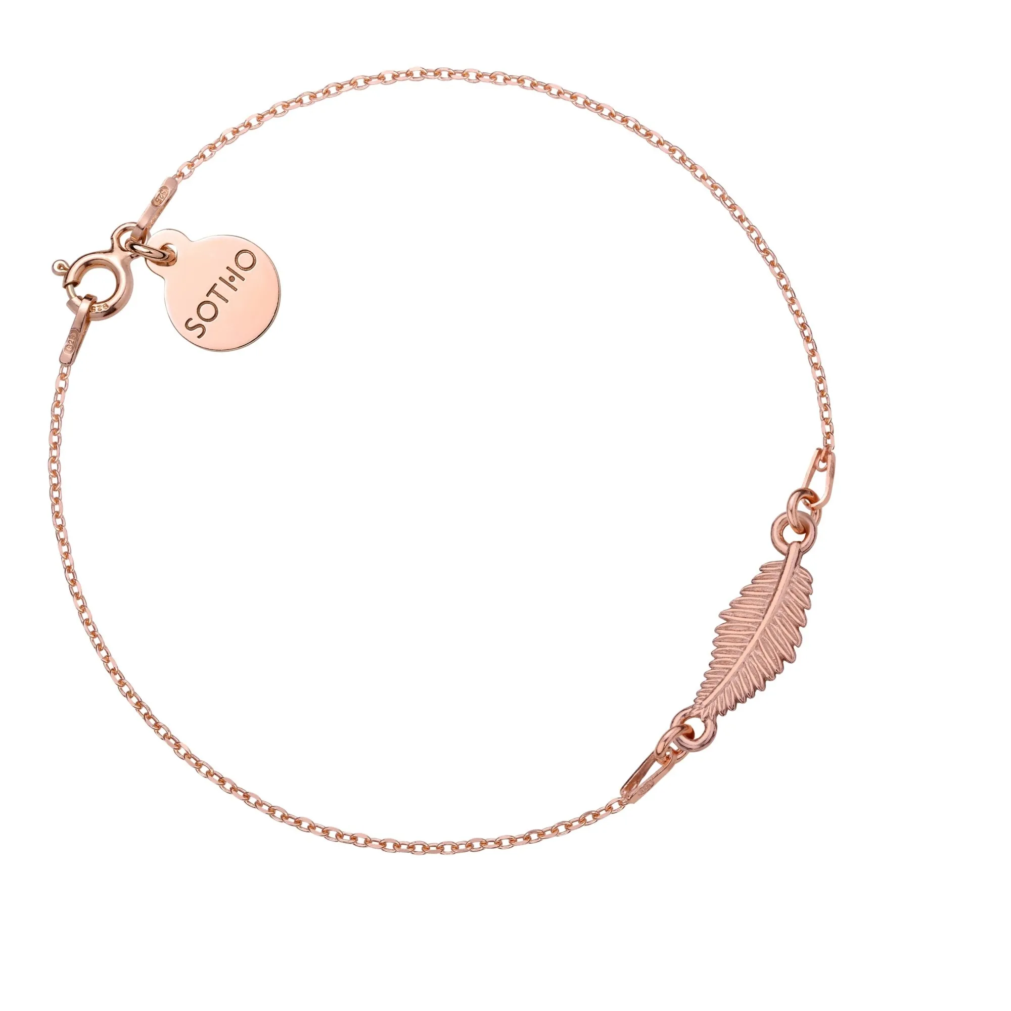 Złota bransoletka łańcuszkowa zdobiona liściem i zawieszką z logo marki. Całość wykonana ze srebra 925 powlekanego 24 karatowym żółtym złotem. Długość ok. 17 cm. Grubość łańcuszka 1 mm. Liść 20 x 7 mm. Zawieszka z logo 10 mm. Produkt o wadze poniżej 5 g. Zapakowana w eleganckie pudełeczko z logo marki. Posiada logowaną metkę. Istnieje możliwość zamówienia bransoletki innej długości, z innym modelem zawieszki, z kilkoma zawieszkami, na innym modelu łańcuszka, w wersji ze srebra 925 lub srebra 925 powlekanego 24 karatowym różowym złotem itp.