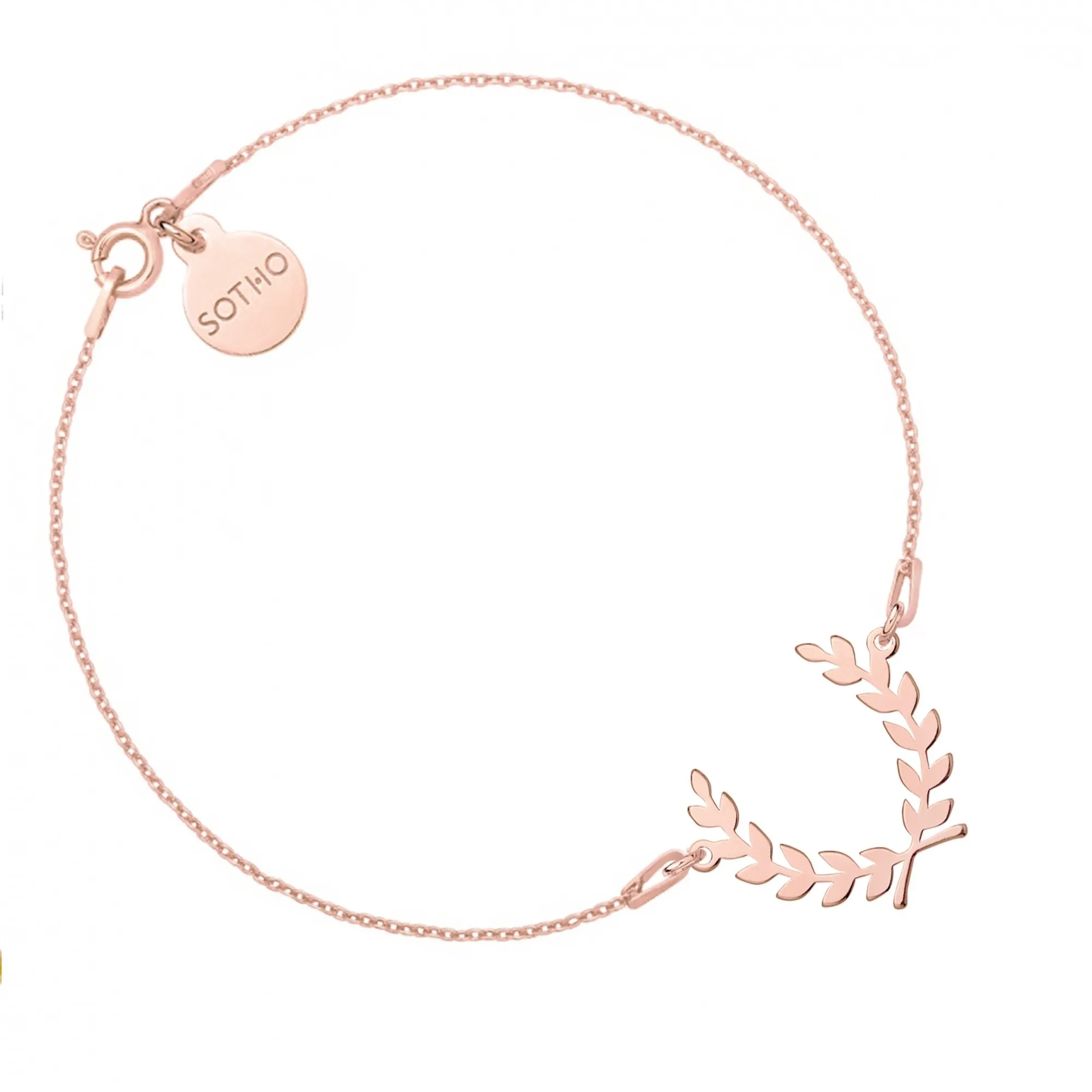 Złota bransoletka łańcuszkowa zdobiona li zściem laurowym i zawieszką z logo marki. Całość wykonana ze srebra 925 powlekanego 24 karatowym żółtym złotem.