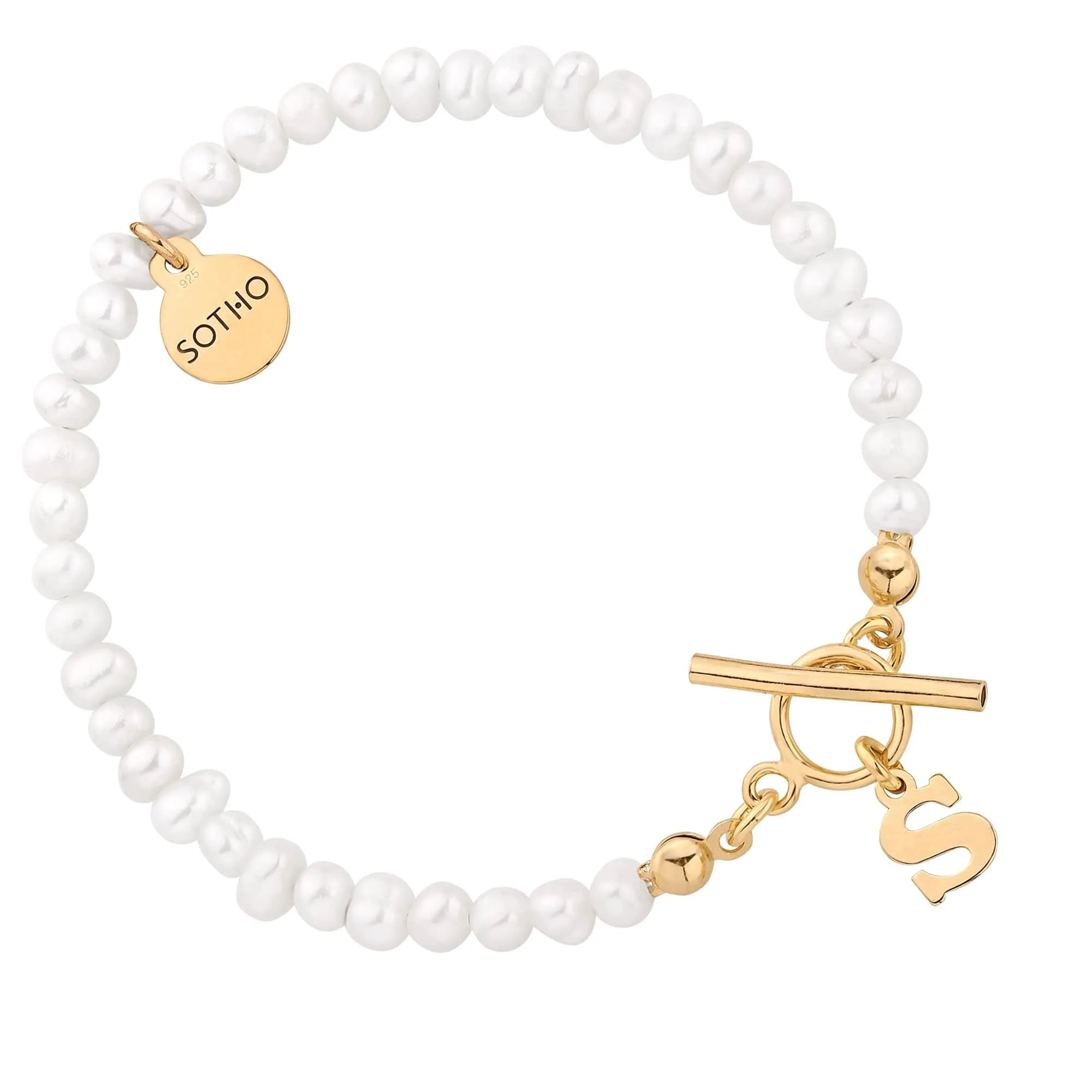 Złota bransoletka z pereł naturalnych z literką : LiTERKI - V
