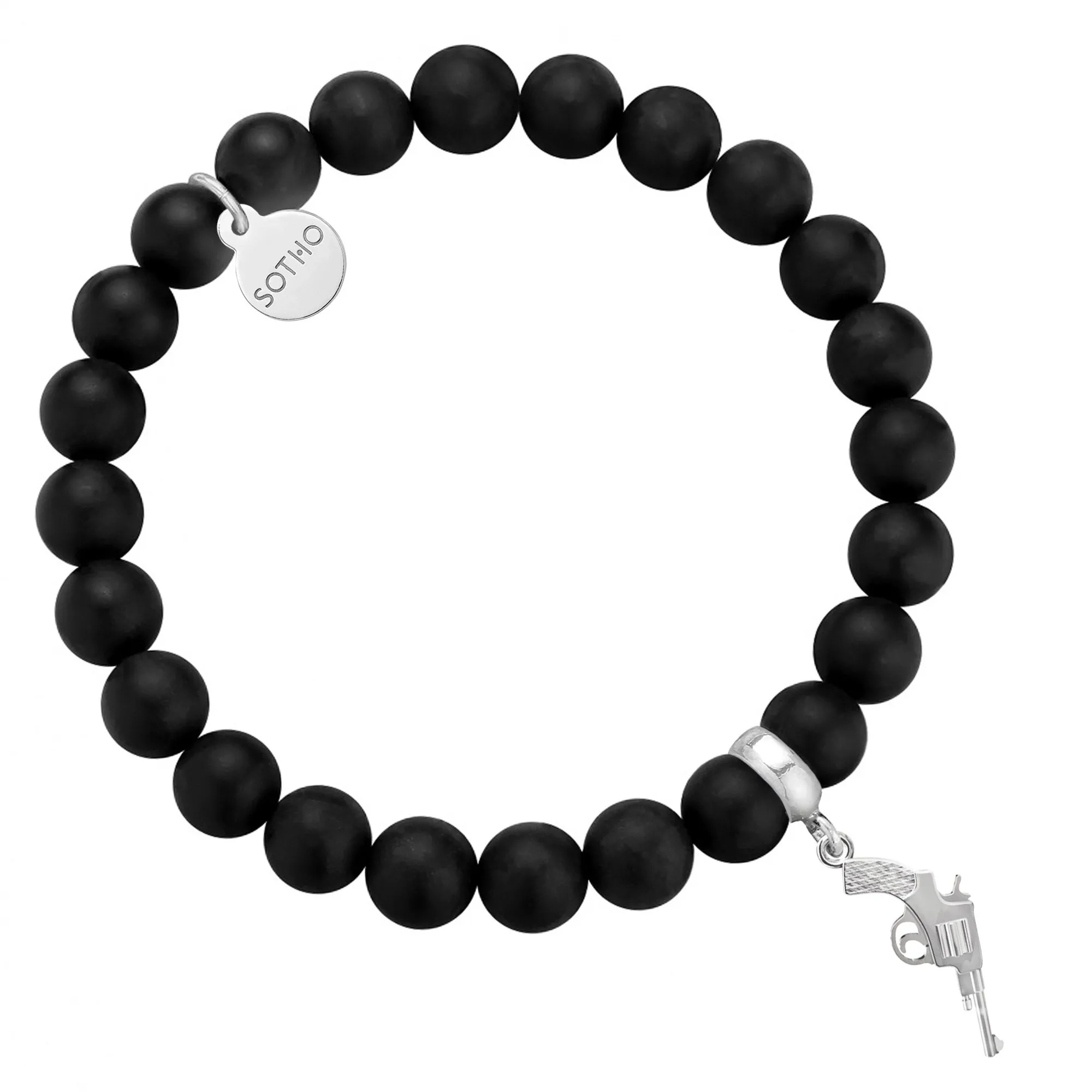 Czarna męska bransoletka z matowego onyksu z rewolwerem