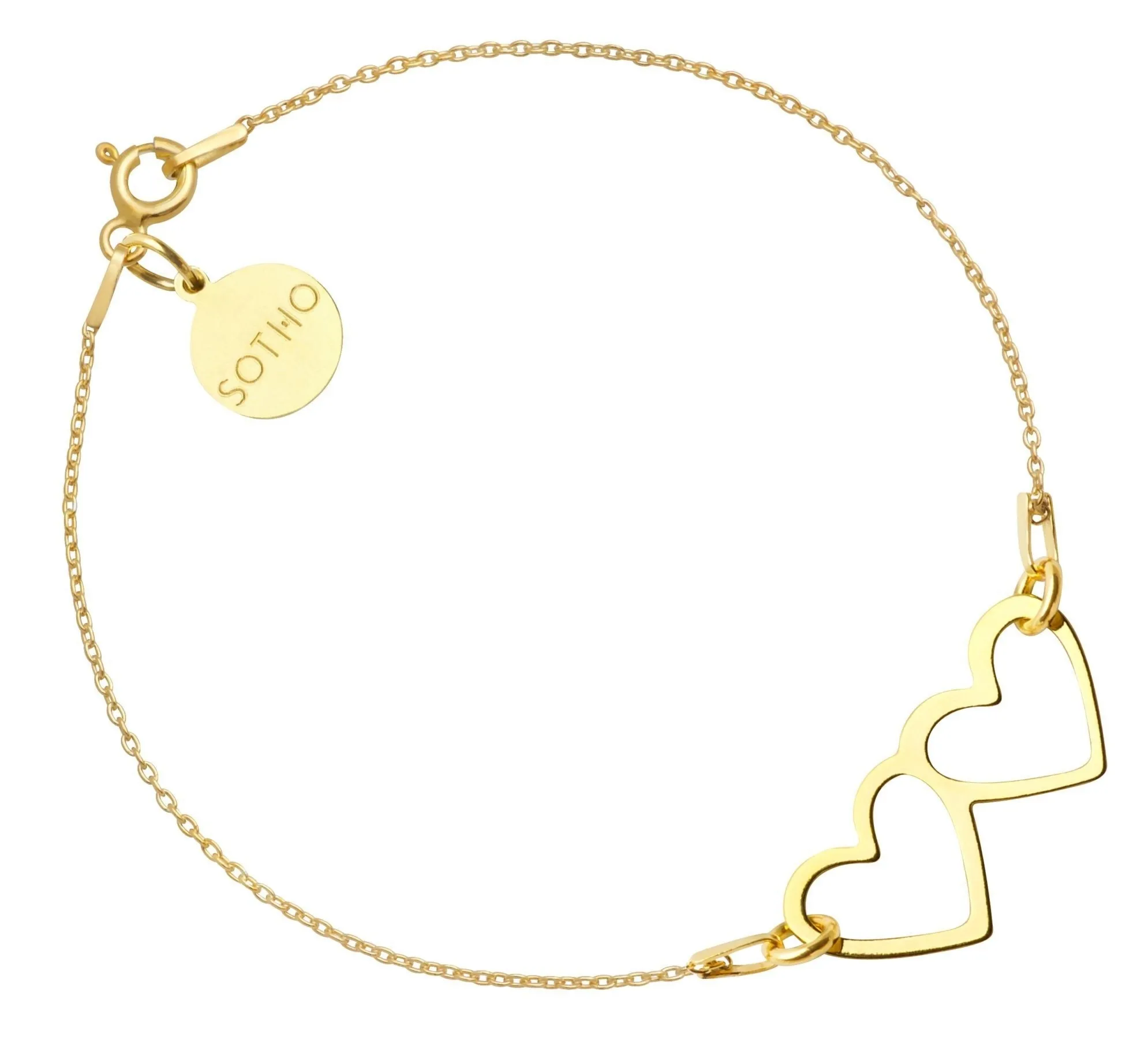 Złota bransoletka z dwoma serduszkami