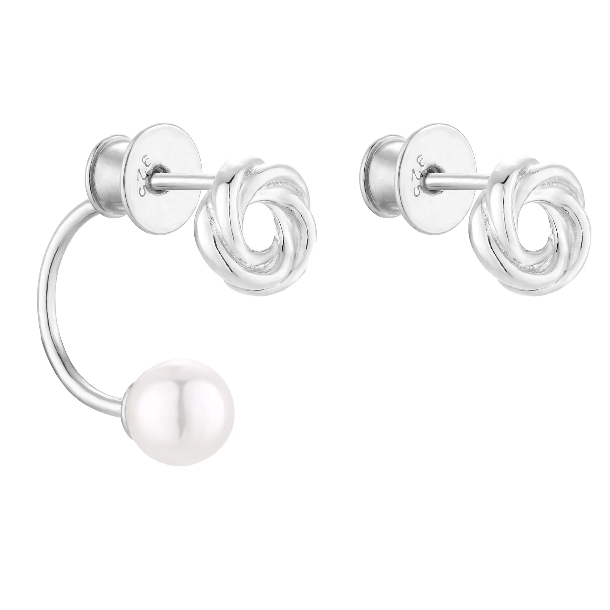 Srebrne asymetryczne kolczyki węzełki z perłami SWAROVSKI® CRYSTAL