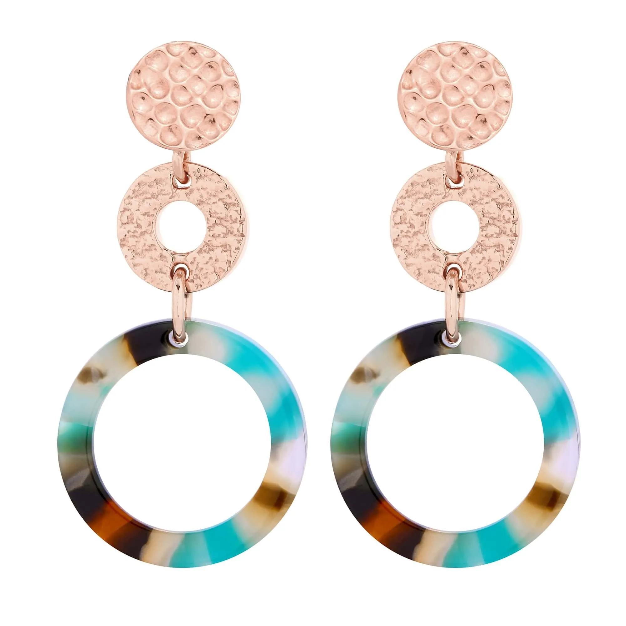 Długie kolczyki koła z różowego złota z turkusową żywicą