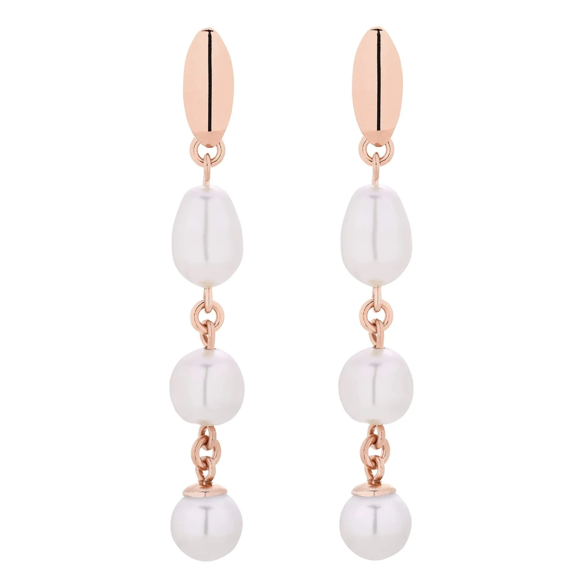 Długie kolczyki w różowym złocie z białymi perłami SWAROVSKI® CRYSTAL