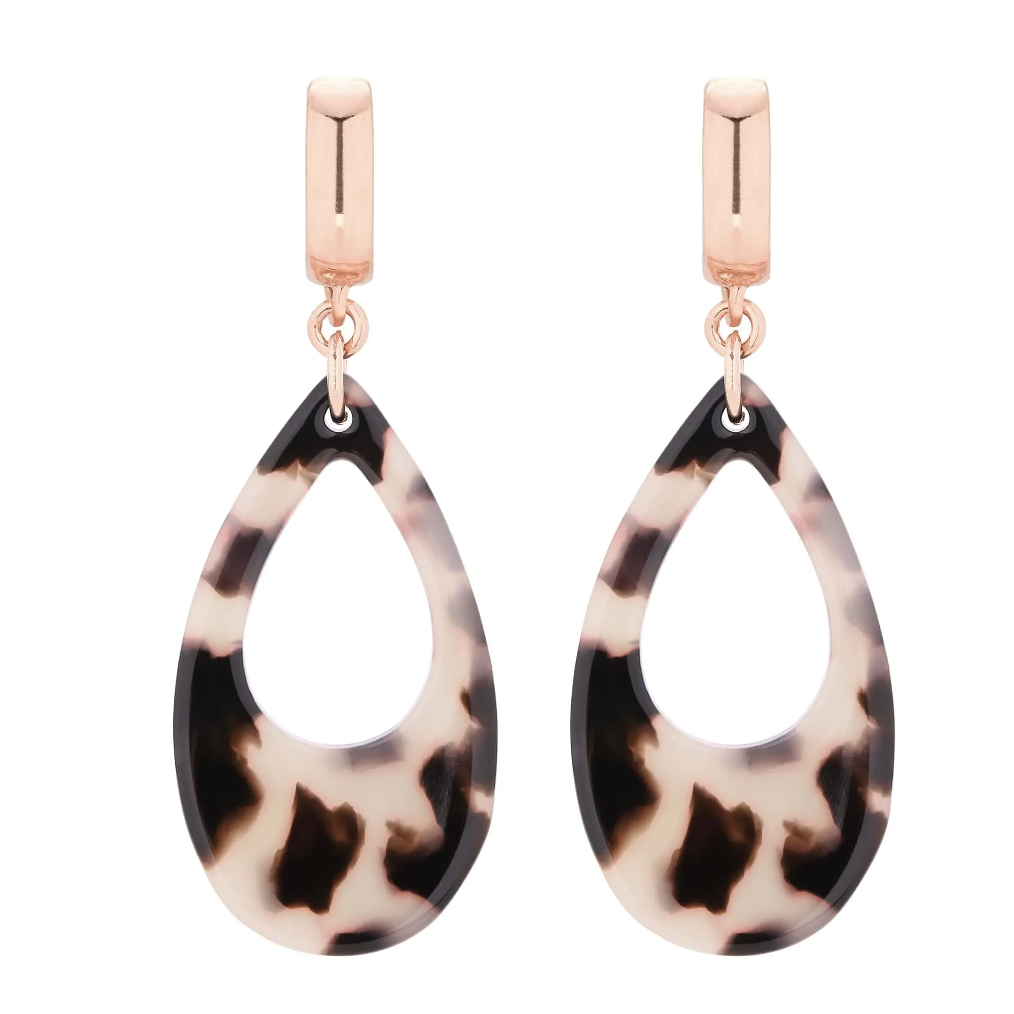 Długie kolczyki z różowego złota i ciemnej żywicy