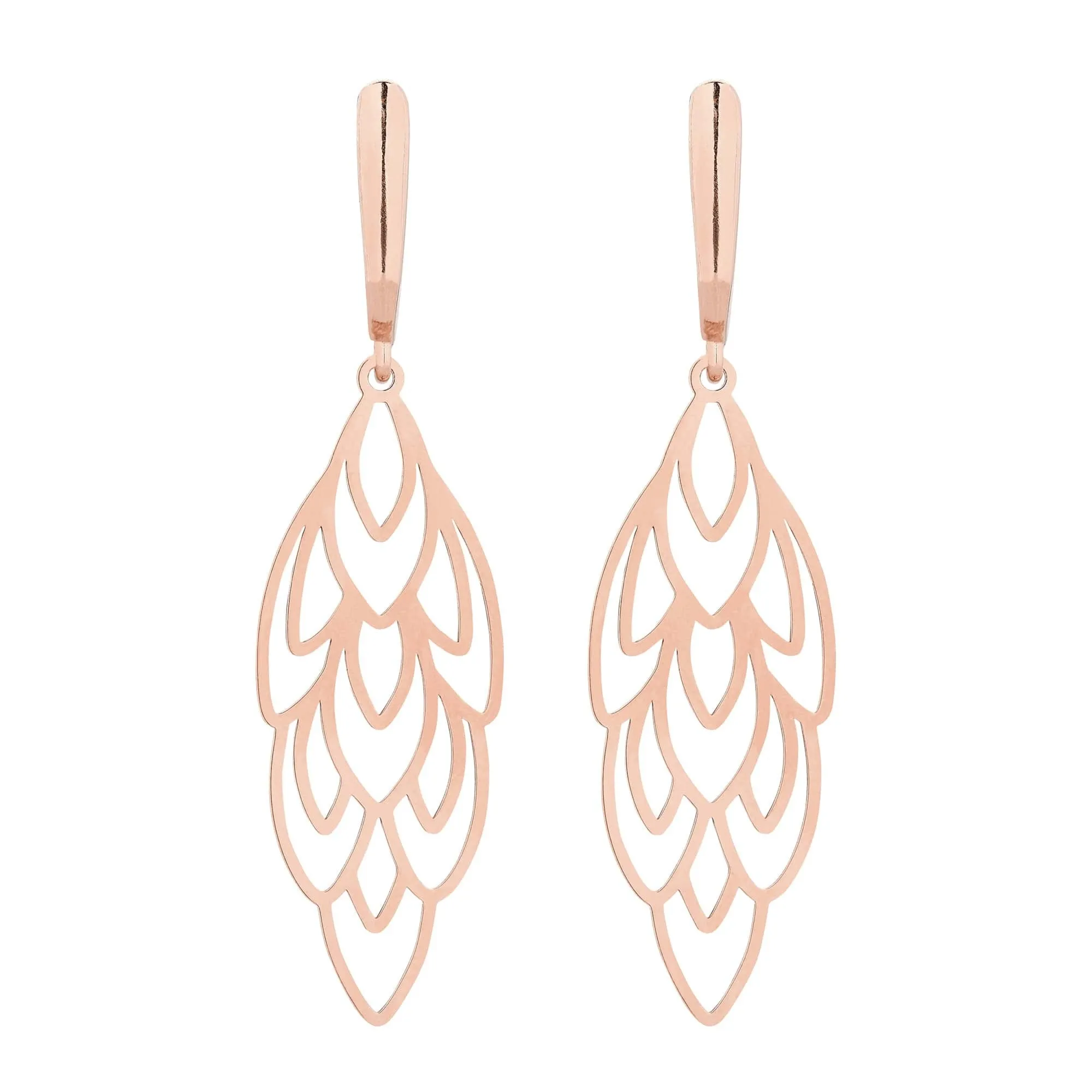 Złote długie kolczyki z ażurowymi rozetami. Zapinane na bigle angielskie. Całość wykonana ze srebra 925 powlekanego 24 karatowym żółtym złotem. Długość kolczyków ok. 5,1 cm Rozeta 3,4 x 1,2 cm Zapakowane w eleganckie pudełeczko z logo marki. Produkt o wadze poniżej 5 g. Posiadają logowaną metkę. Istnieje możliwość zamówienia kolczyków w wersji ze srebra 925 lub srebra 925 powlekanego 24 karatowym różowym złotem, na innych biglach, klipsów, z dodatkowymi zawieszkami, kamienieniami, perłami lub kryształami SWAROVSKI® CRYSTAL itp.