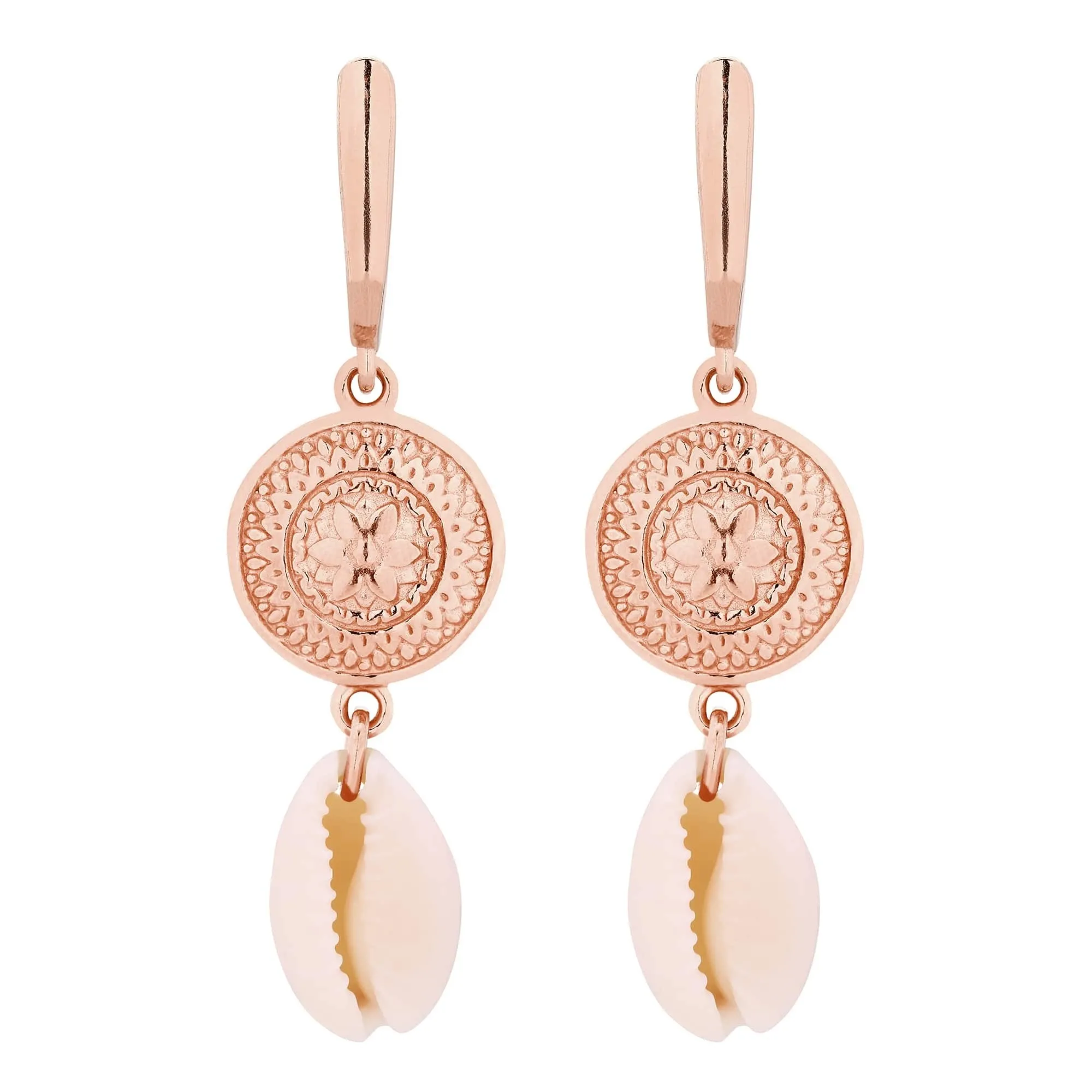 Długie kolczyki z rozetami i muszelkami z różowego złota