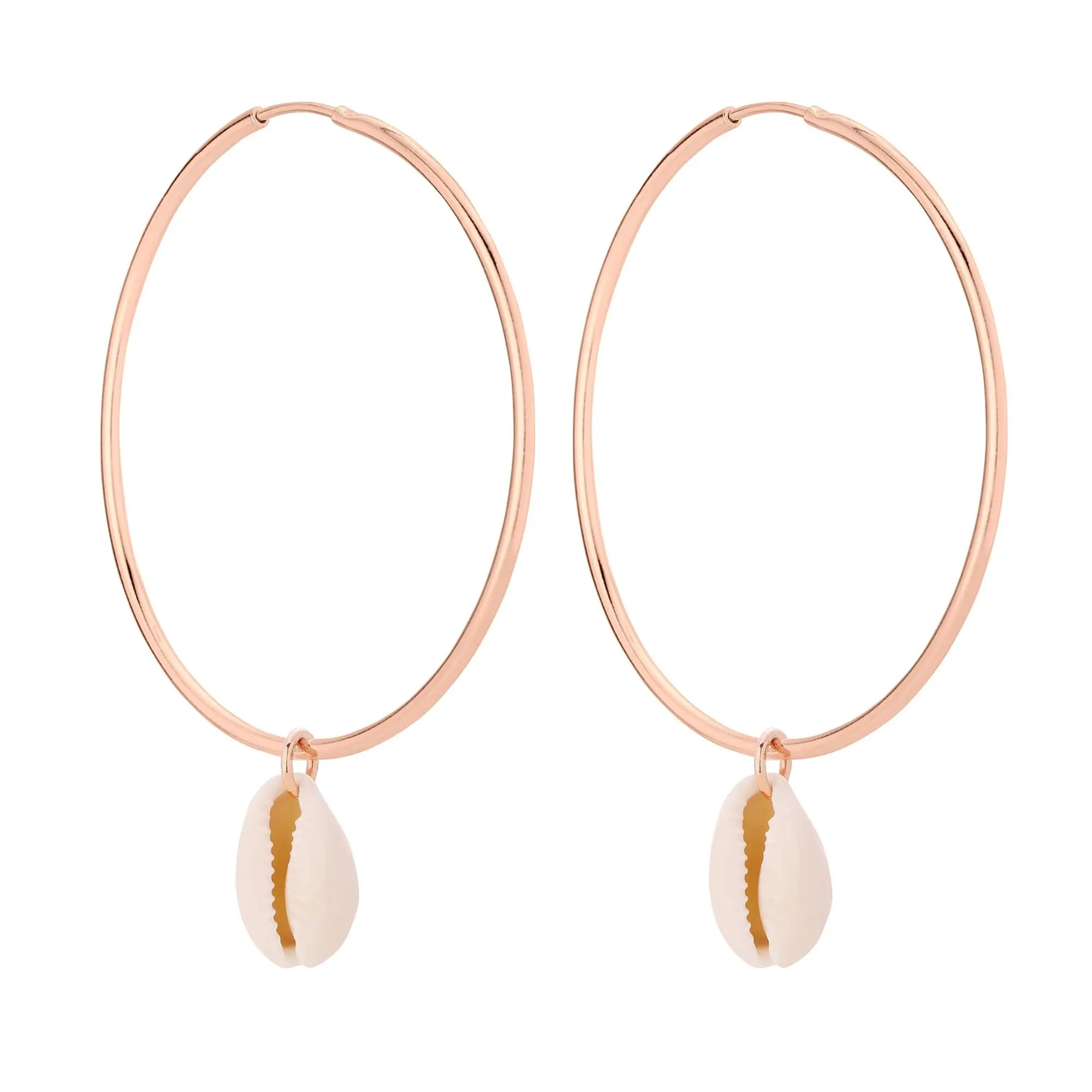 Złote kolczyki duże koła z muszelkami. Całość wykonana ze srebra 925 powlekanego 24 karatowym żółtym złotem. Długość kolczyków 7 cm Średnica kół 5,3 cm Muszelka 16 x 10 mm Zapakowane w eleganckie pudełeczko z logo marki. Produkt o wadze poniżej 5 g. Posiadają logowaną metkę. Istnieje możliwość zamówienia kolczyków z inną zawieszką, z kilkoma zawieszkami, w wersji ze srebra 925 lub srebra 925 powlekanego 24 karatowym różowym złotem, z dodatkowymi kamienieniami, perłami lub kryształami SWAROVSKI® CRYSTAL itp.