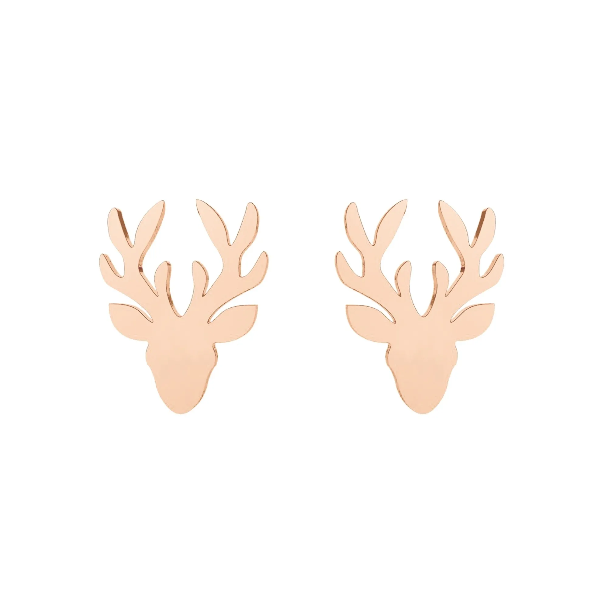 Złote kolczyki w kształcie jeleni. Zapinane na sztyft. Kolczyki posiadają zapięcia (baranki). Kolczyki w całości wykonane są ze srebra 925 powlekanego 24 karatowym żółtym złotem.