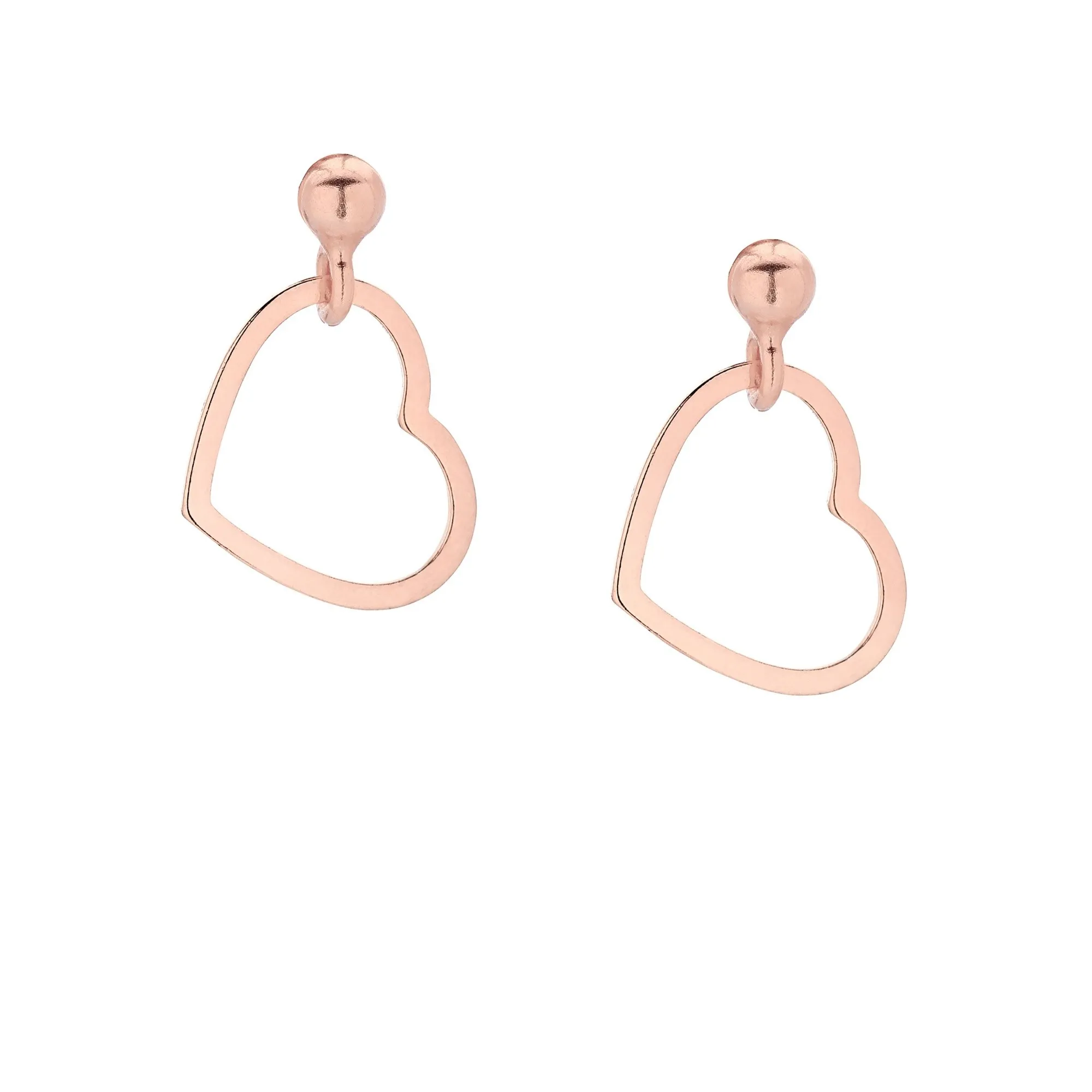 Złote kolczyki z serduszkami. Całość wykonana ze srebra 925 powlekanego 24 karatowym żółtym złotem. Zapinane na sztyft.