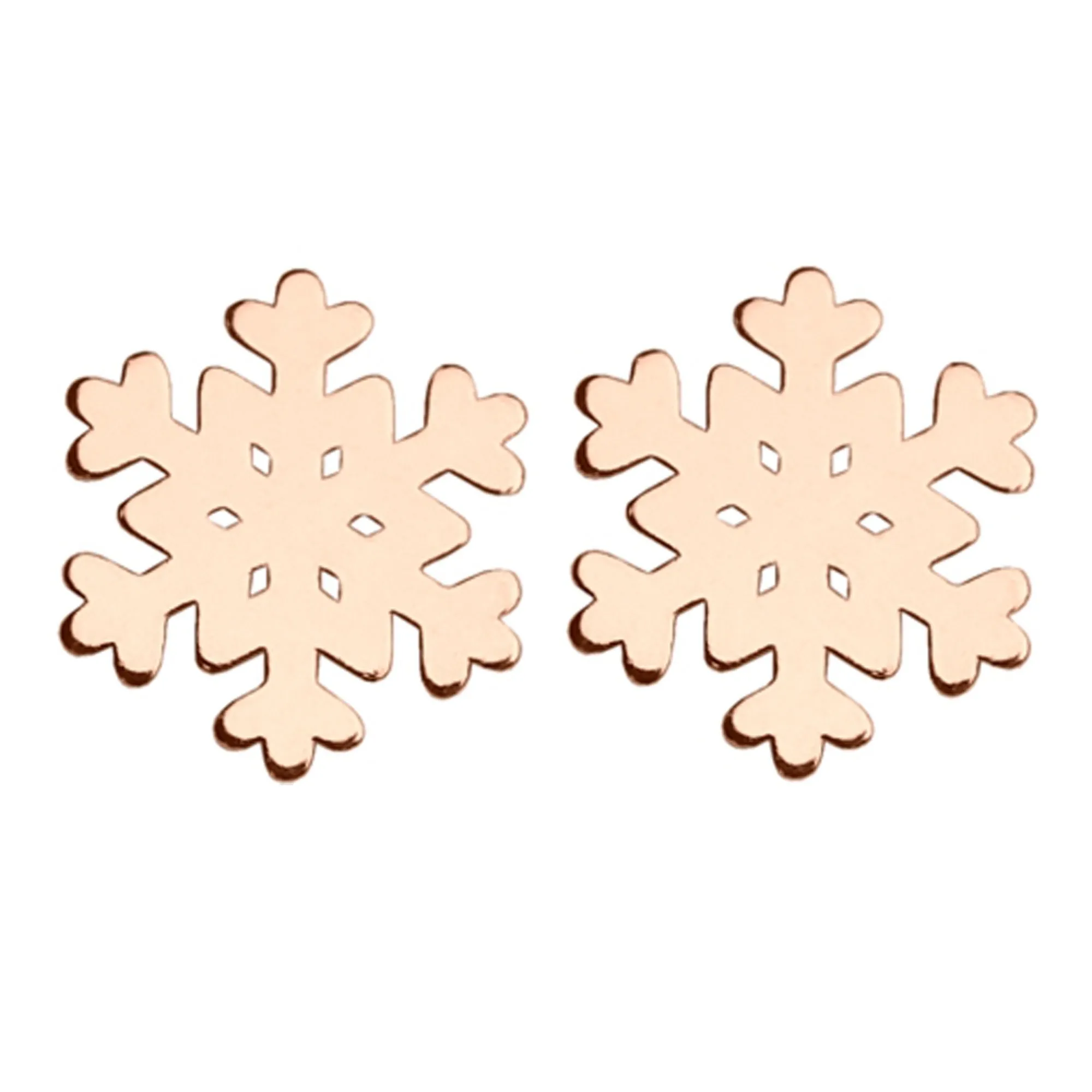 Złote kolczyki w kształcie śnieżynek. Zapinane na sztyft. Kolczyki posiadają zapięcia (baranki). Kolczyki w całości wykonane są ze srebra 925 powlekanego 24 karatowym żółtym złotem.