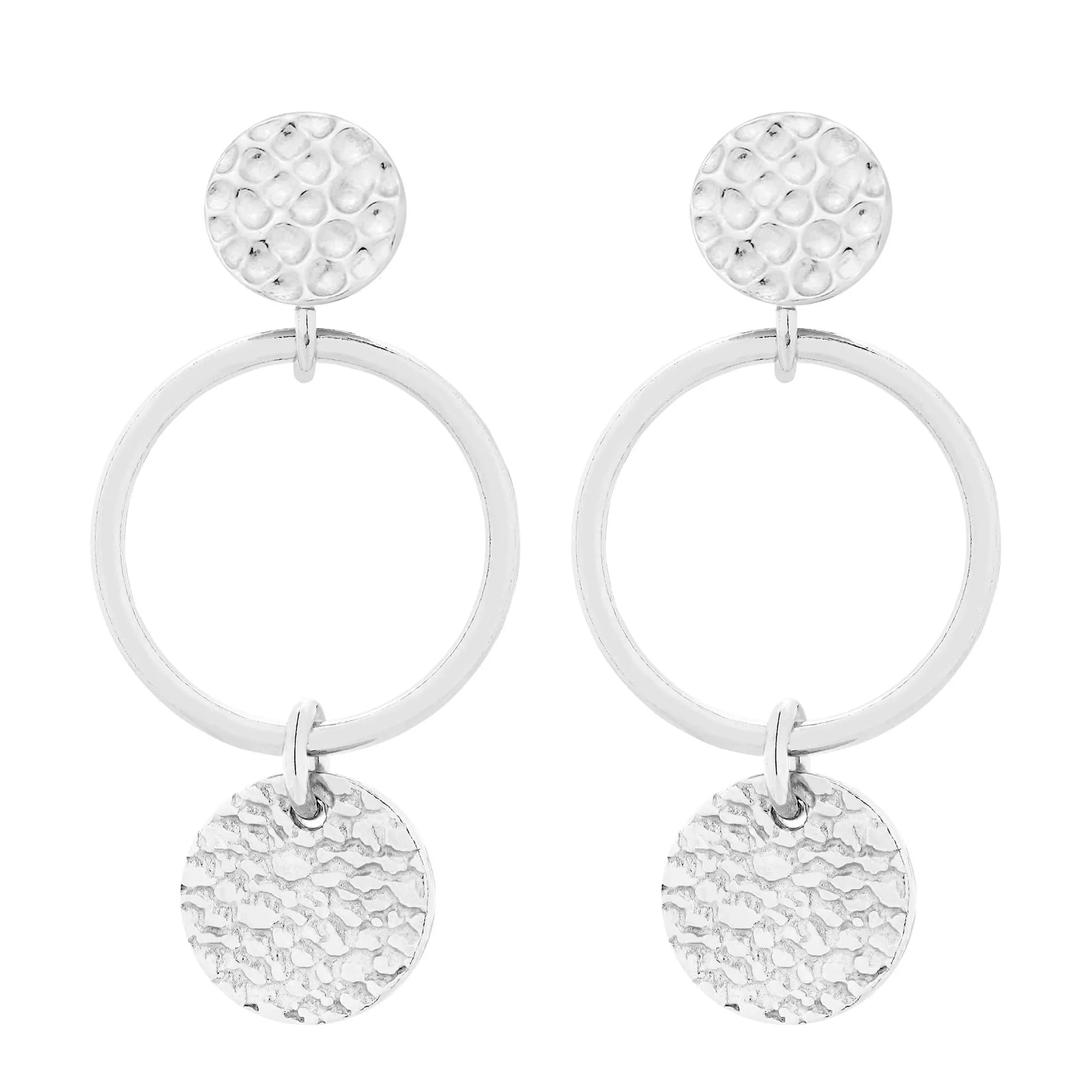 Srebrne kolczyki koła z chropowatymi kółeczkami