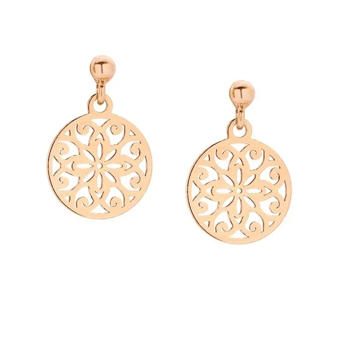 Złote kolczyki wykonane z arabskich rozetek. Całość wykonana ze srebra 925 powlekanego 24 karatowym żółtym złotem. Zapinane na sztyft.