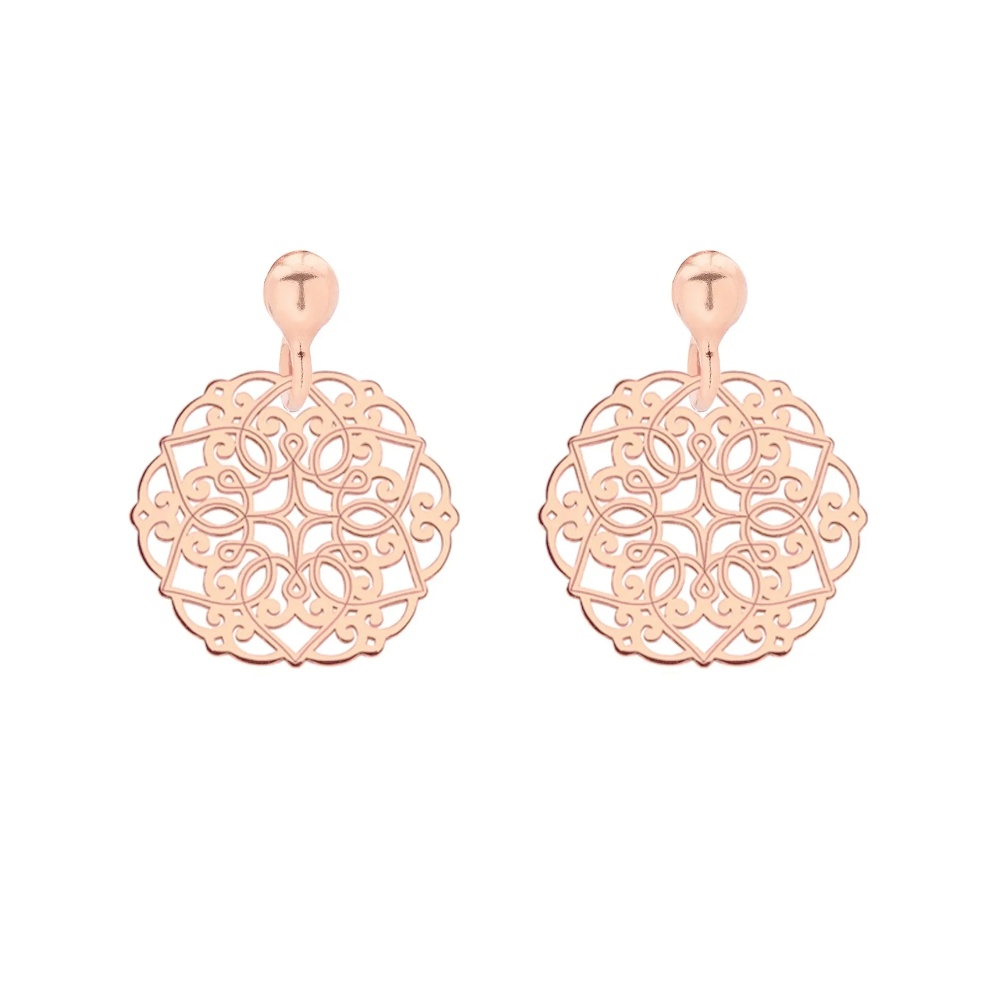 Złote kolczyki wykonane z rozetek. Całość wykonana ze srebra 925 powlekanego 24 karatowym żółtym złotem. Zapinane na sztyft.
