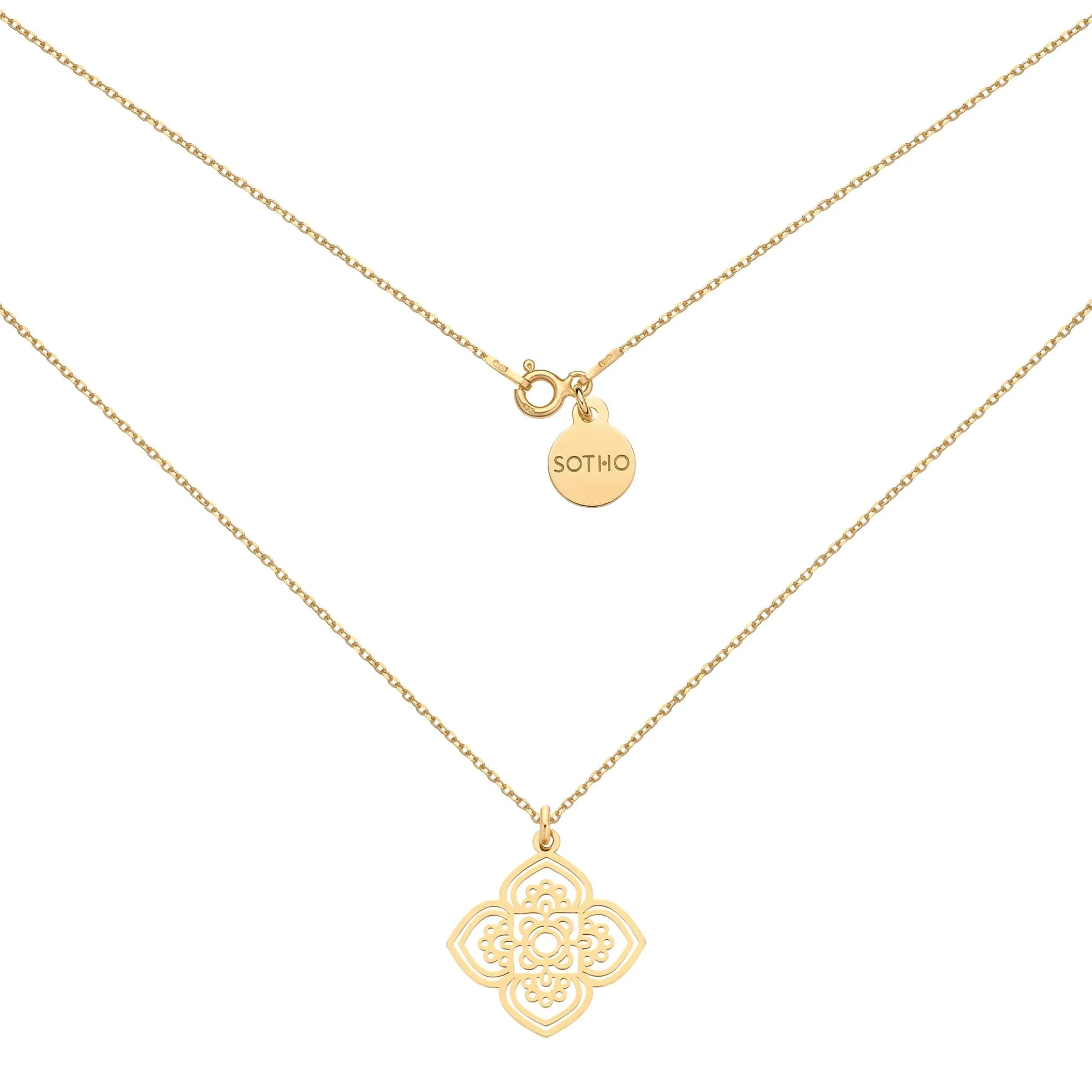 Złoty naszyjnik łańcuszkowy zdobiony rozetą i zawieszką z logo marki. Całość wykonana ze srebra 925 powlekanego 24 karatowym żółtym złotem. Długość naszyjnika do wyboru 38, 40, 45, 50, 60 lub 70cm Grubość łańcuszka 1 mm Rozeta 20 mm Zawieszka z logo 10 mm Produkt o wadze poniżej 5 g. Zapakowany w eleganckie pudełeczko z logo marki. Posiada logowaną metkę. Istnieje możliwość zamówienia naszyjnika innej długości, z innym modelem zawieszki, z kilkoma zawieszkami, na innym modelu łańcuszka, w wersji ze srebra 925 lub srebra 925 powlekanego 24 karatowym różowym złotem, z dodatkowymi kamieniami, perłami lub kryształami SWAROVSKI® CRYSTAL itp.
