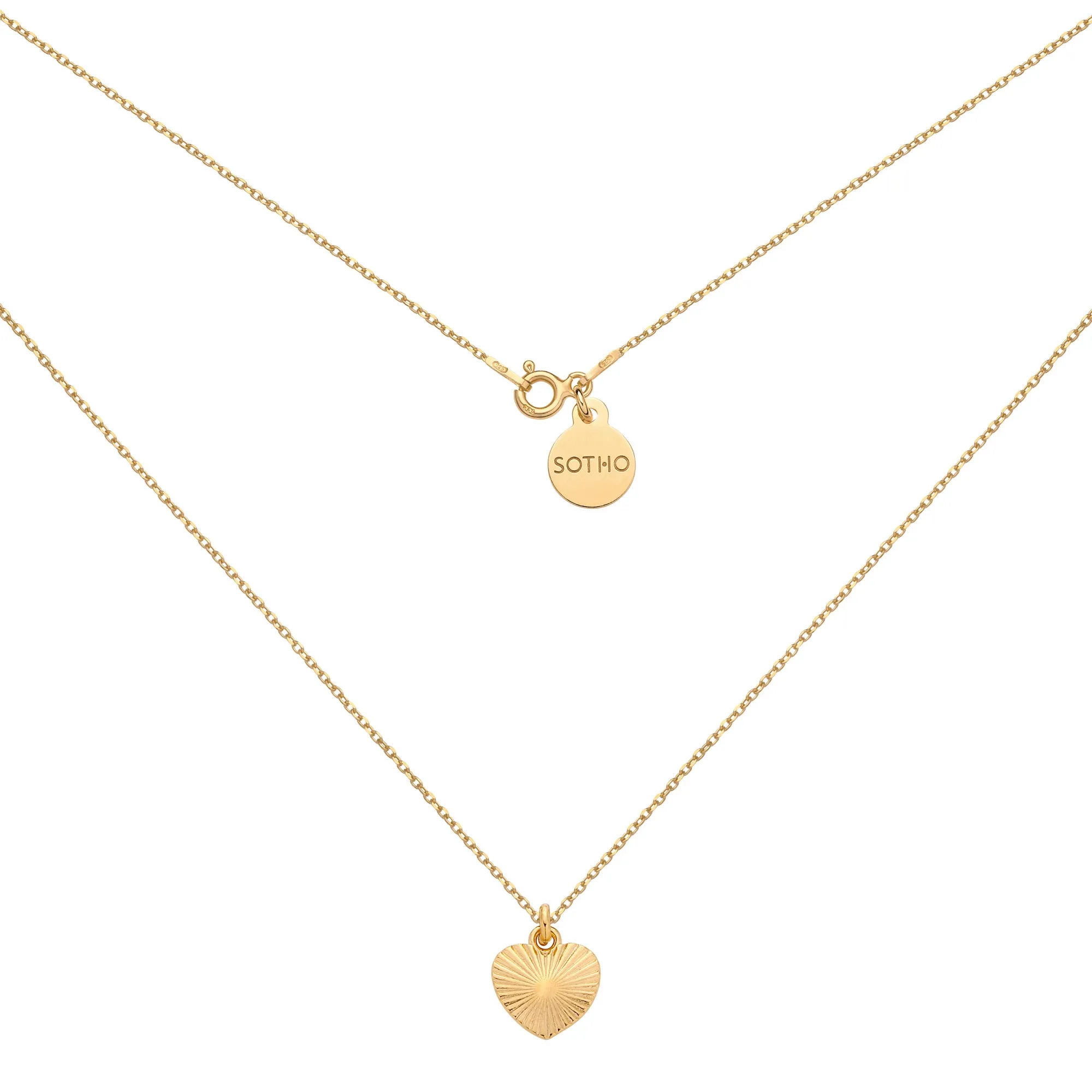 Złoty naszyjnik sercem. Całość wykonana ze srebra 925 pokrytego 24k żółtym złotem. Długość naszyjnika do wyboru 38, 40, 45, 50, 60 lub 70 cm Grubość łańcuszka 1 mm Serce 10 mm Zawieszka z logo 10 mm Produkt o wadze poniżej 5 g. Zapakowany w eleganckie pudełeczko z logo marki. Posiada logowaną metkę. Istnieje możliwość zamówienia naszyjnika innej długości, z innym modelem zawieszki, z kilkoma zawieszkami, na innym modelu łańcuszka, w wersji ze srebra 925 powlekanego 24 karatowym żółtym lub różowym złotem, z dodatkowymi kamieniami perłami lub kryształami SWAROVSKI® CRYSTAL itp.