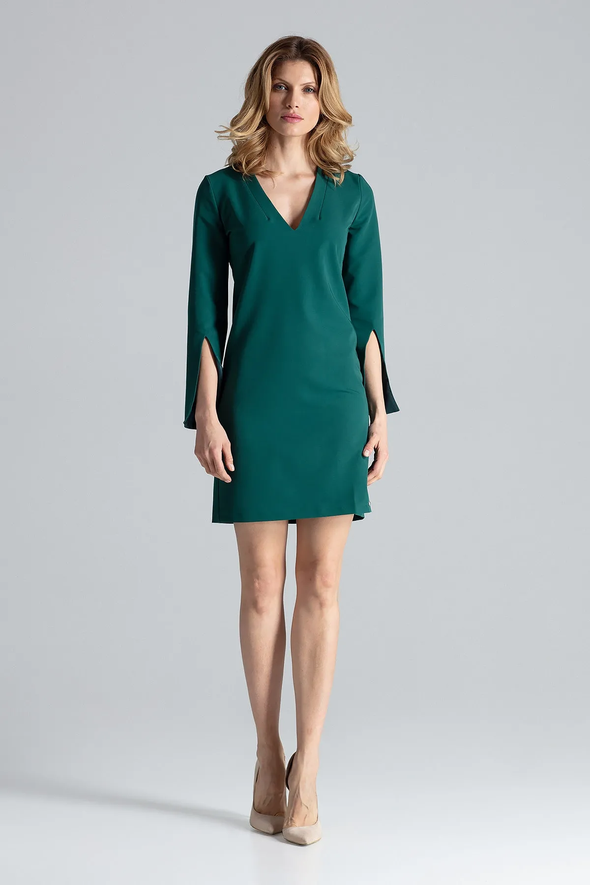 Żółta Sukienka Koktajlowa Mini z Rozciętym Rękawem