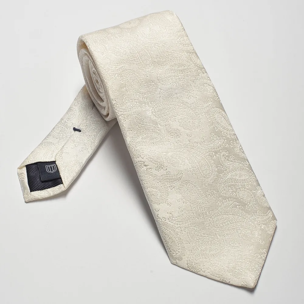 Śmietankowy krawat ślubny we wzór paisley Profuomo