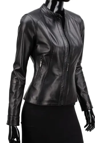 SAB450 - lekka kurtka skórzana damska z czarnej skóry DORJAN