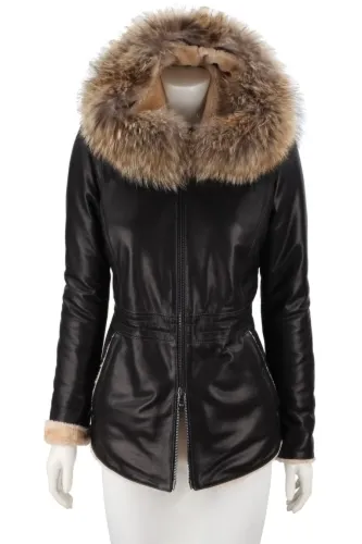 ZUZK450_2 - parka skórzana damska z kapturem i futerkiem DORJAN